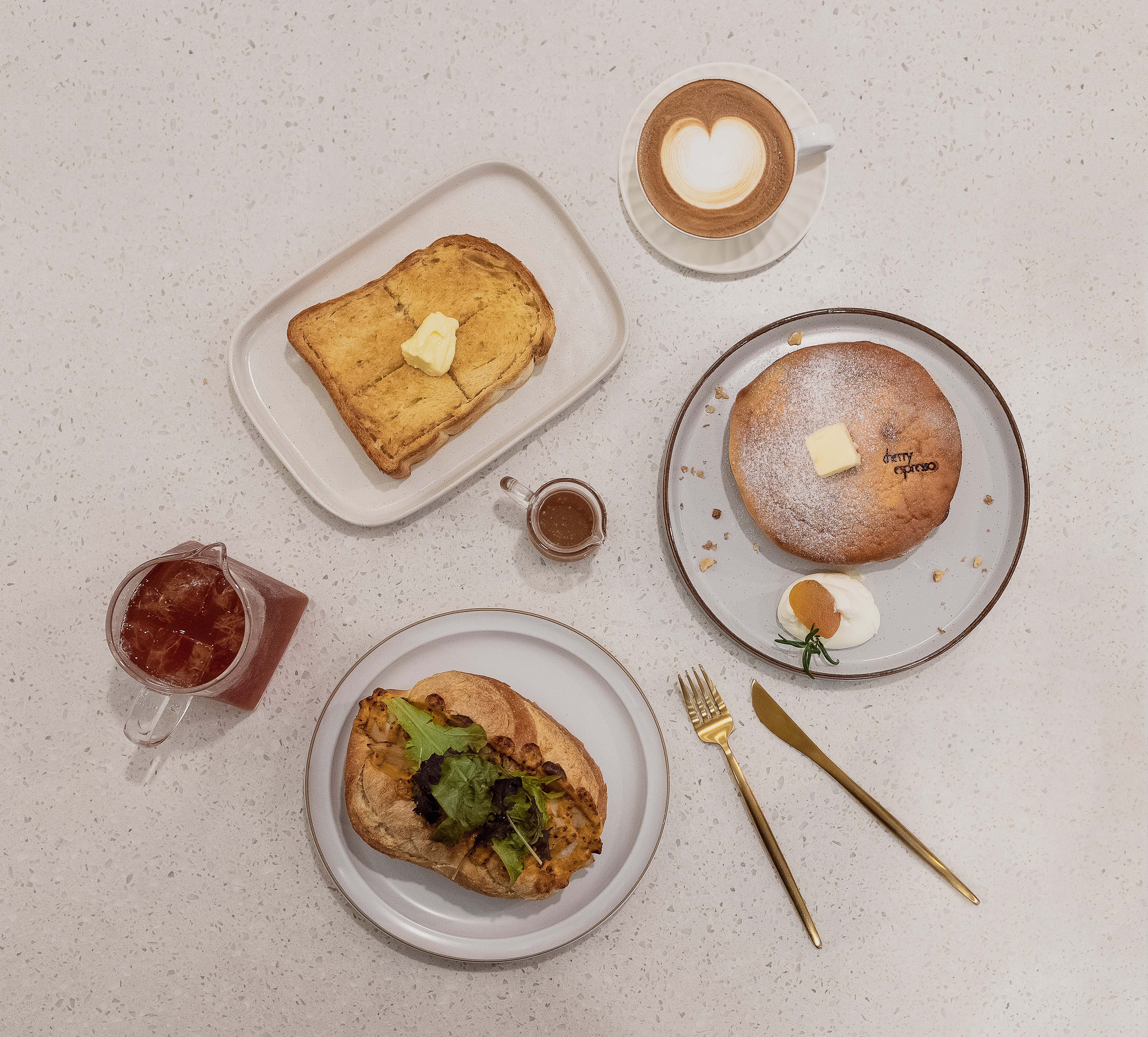 In-store brand collateral and menu design integrating photography direction and on-site food photography.